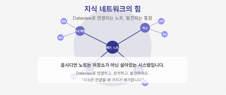 💡 Dataview는 노트 작성에서 끝나지 않고, 작성한 노트에서 새로운 통찰을 발견하는 도구입니다. 메타데이터를 철저히 관리하고 쿼리를 통해 정보를 연결하면, 당신의 노트 시스템은 단순한 저장소가 아닌 지식의 네트워크로 진화할 것입니다.