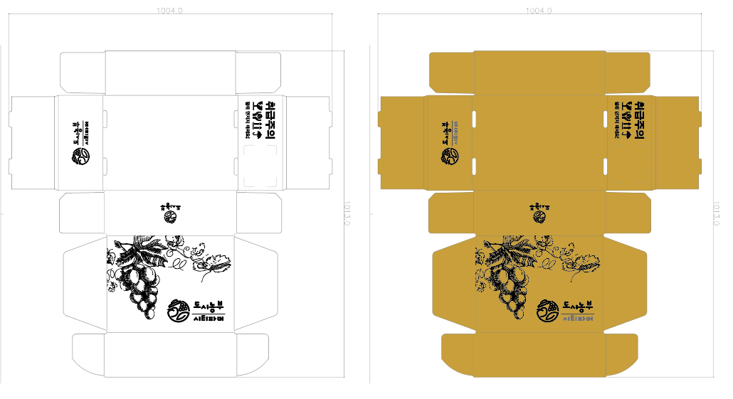 박스 디자인할 때는 두 가지 버전을 만들었어요. 화이트 버전은 깔끔하고 모던한 느낌, 크래프트 버전은 좀 더 자연스럽고 친환경적인 느낌으로요. 박스를 펼쳤을 때 포도 일러스트가 자연스럽게 이어지도록 배치한 게 개인적으로 만족스러웠어요.