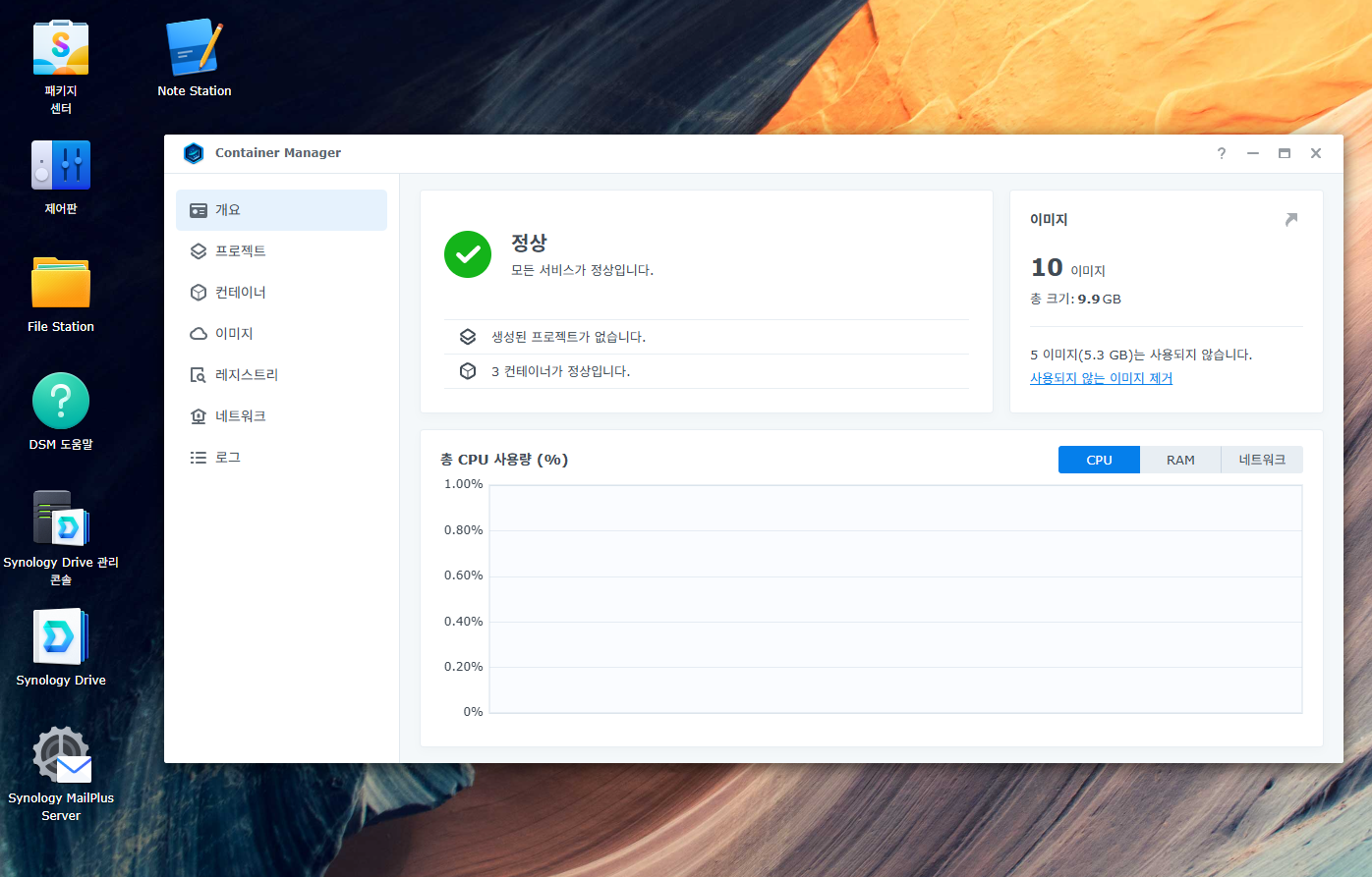 - Container Manager 패키지 설치