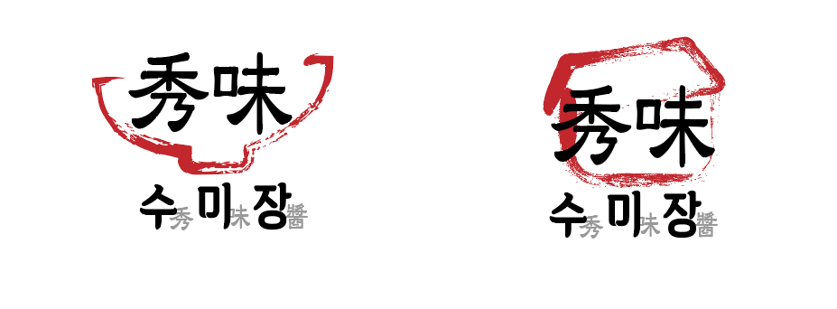 '秀味(수미)'라는 한자를 메인으로 쓰기로 했어요. 근데 한자만 쓰면 젊은 층이 읽기 어려울 것 같아서, 밑에 한글로 '-연어장-', '-새우장-' 이렇게 제품명을 붙였어요.