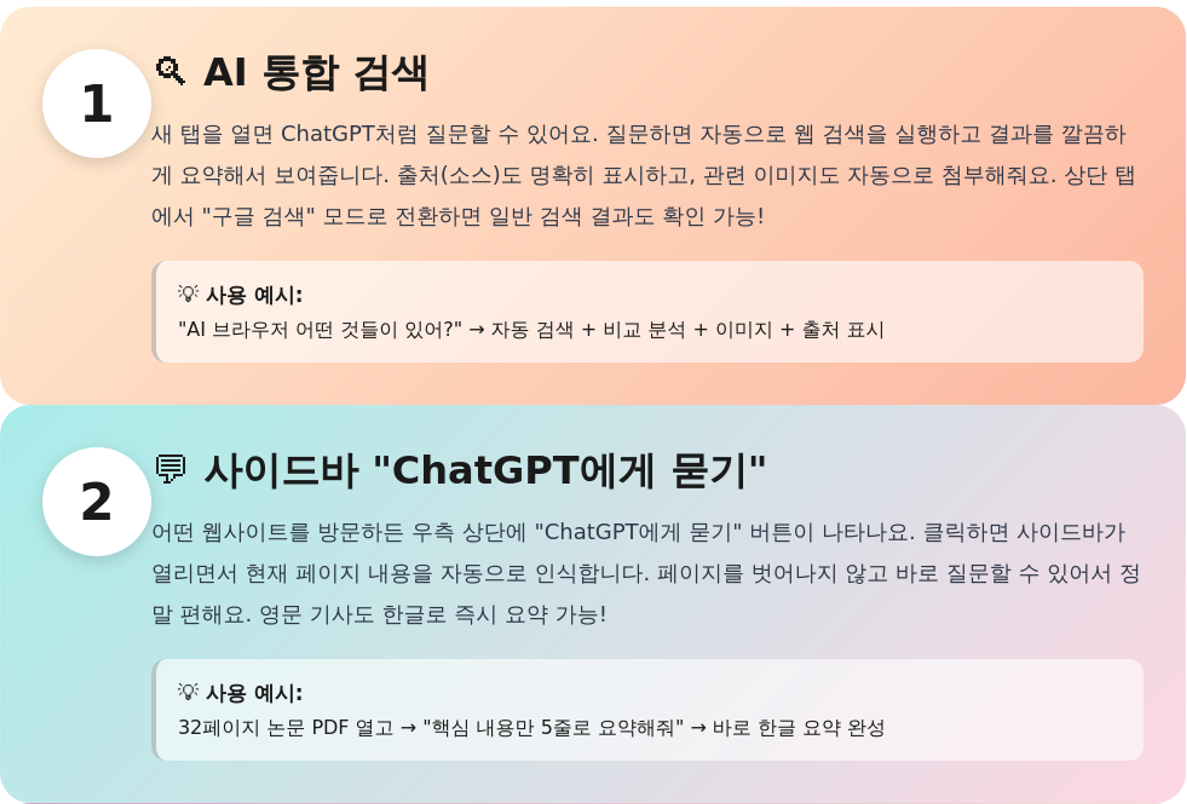 처음에는 "그냥 크롬 쓰면 되지 뭐"라고 생각했는데, 직접 써보니까 생산성이 확실히 달라지더라고요. 특히: