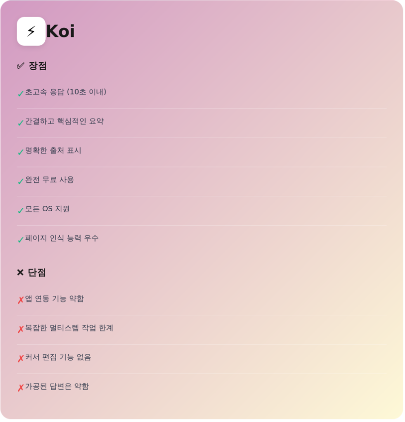 - Koi: 완전 무료 (Perplexity 계정만 있으면 됨)