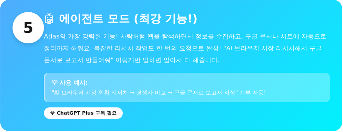 ⚠️ 중요: 브라우저 자체는 무료지만, 에이전트 모드는 ChatGPT Plus 이상 구독이 필요해요!